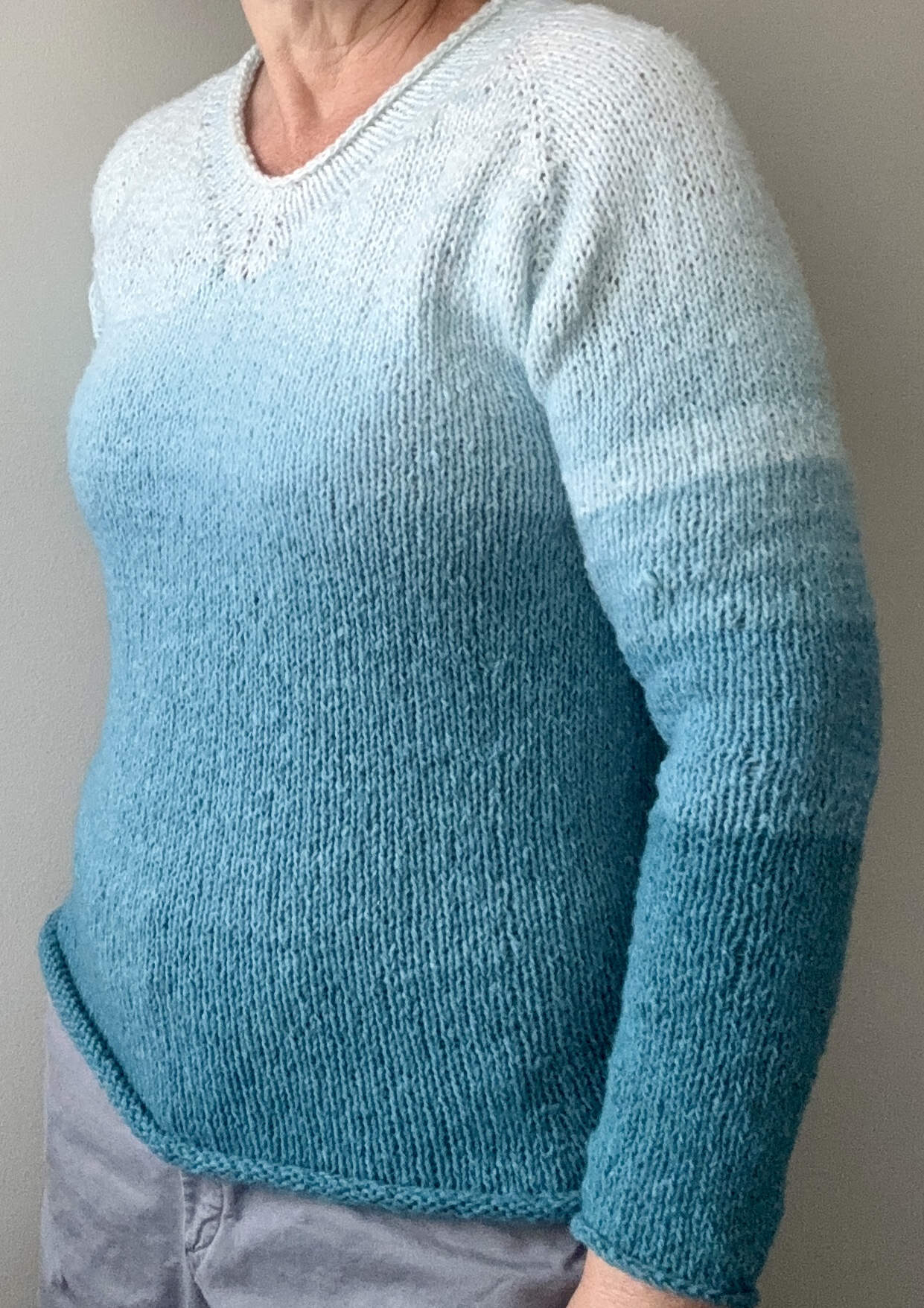 A simple, cosy v-neck ombré sweater with photo’s and video links to assist beginners. Sizes included are ladies small to XL and size small was one bundle of Caron Cakes Yarn (8 oz, 720 yards). All proceeds donated to Canadian Nonprofits.